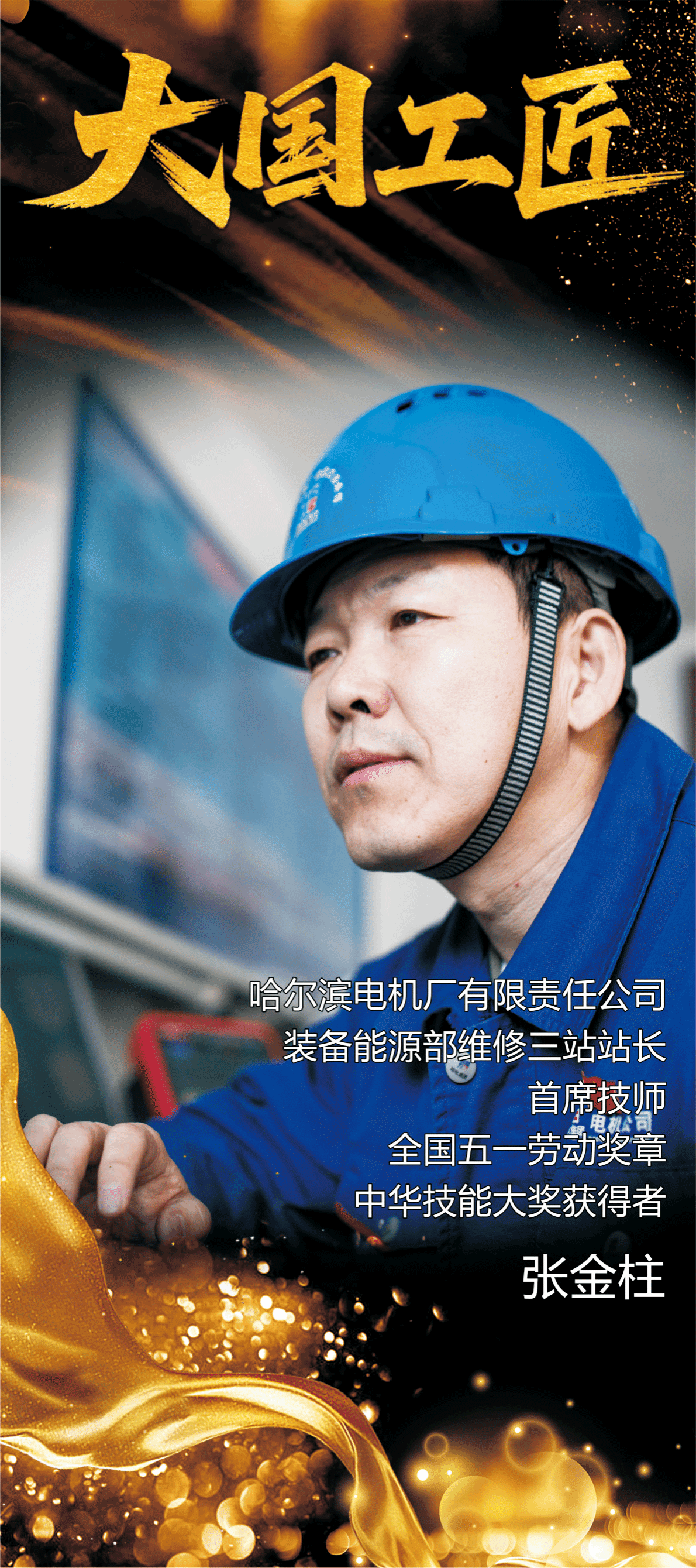 张金柱,中共党员,电机公司维修电工岗位高级专家,国家级技能大师工作室领办人。参加工作37年来,他扎根一线,潜心钻研电气维修技术,从一名普通学徒逐步成长为我国发电装备制造领域的技术领军人才,荣获中华技能大奖、全国技术能手、全国“五一”劳动奖章、国务院政府特殊津贴专家等多项重要荣誉。