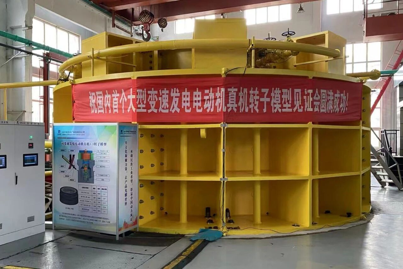 回望开云app官方在线入口变速抽水蓄能机组的研发之路,是几代人勇闯“无人区”的坚守与圆梦的历程。从20世纪90年代开启交流励磁电机理论研究与模型验证,到2016年完成丰宁二期项目模拟设计及转子模型研制;从2021年依托国家重点研发计划,成功研制10兆瓦变速海水蓄能发电电动机样机并完成带负载并网联调试验,再到当前,国内首次完成直径5米级立式1:1真机转子模型试验,世界电压/电流等级最高、难度最大的6.6千伏/万安培级1:1集电系统模型试验,国内首次提出的U/T型螺栓组合式端部固定结构的Bypass旁路通风模型试验等,分别通过行业专家见证和验收。研发团队突破了一个个关键核心技术瓶颈,每一步都凝聚着哈电人的心血与汗水,每一次突破都彰显着大国工匠的执着与坚守,每一项成果都镌刻着自主创新的坚定与豪迈。